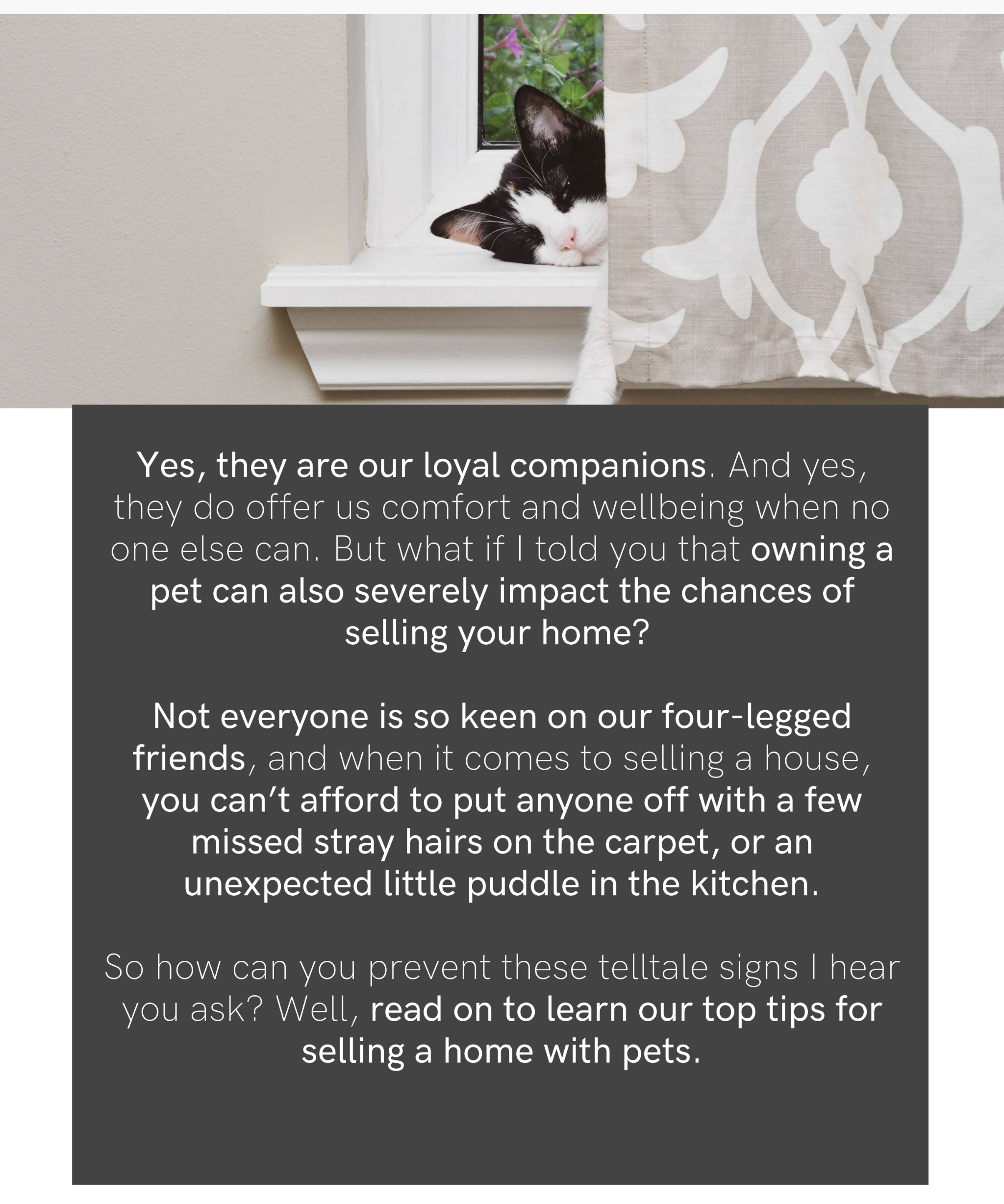 Yes, they are our loyal companions, and yes, they do offer us comfort and wellbeing when no one else can. But what if I told you that owning a pet can also severely impact the chances of selling your home?